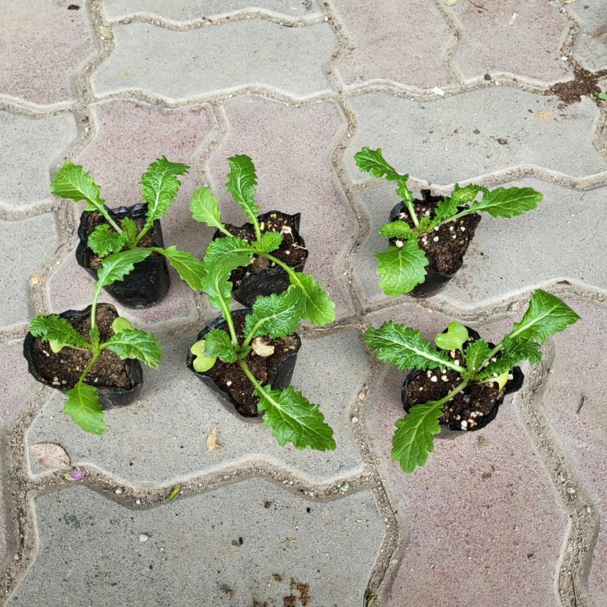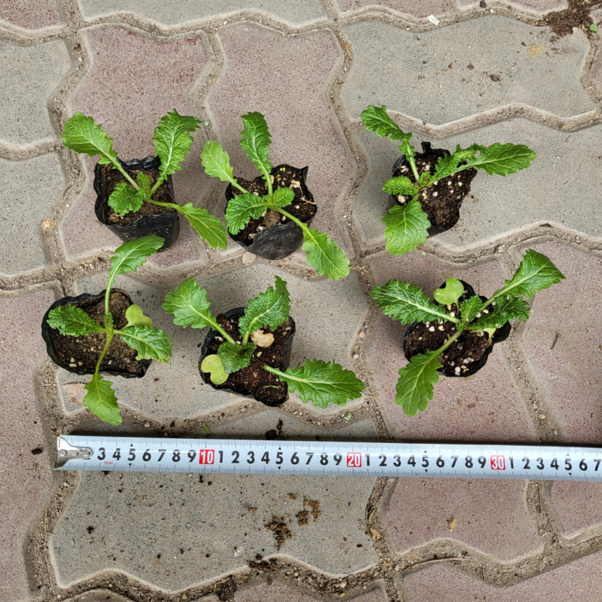 청겨자 모종의 크기를 가늠할 수 있는 사진이 잘 나와있어요~
