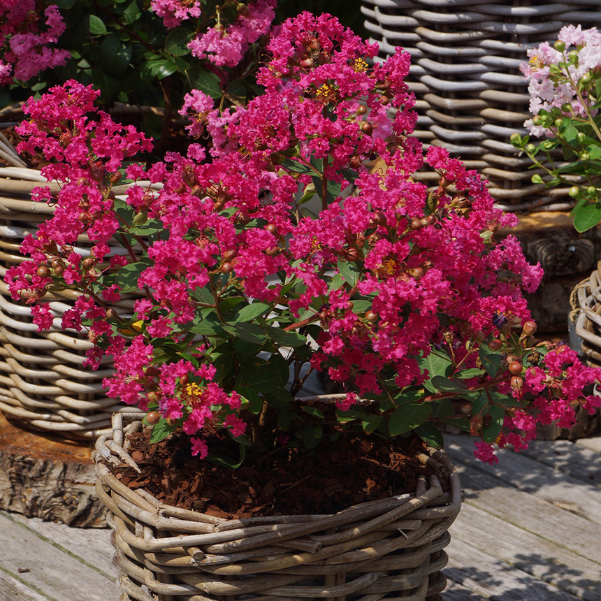 선명한 진한핑크 꽃과 계절에 따라 변하는 화려한 잎 색깔로 사랑받는 배롱나무 핑크벨루어